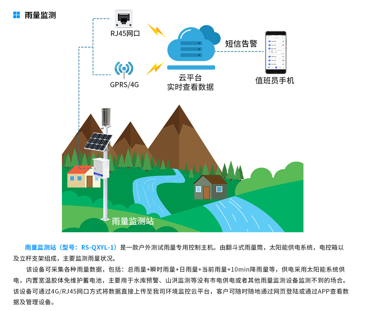 无线报警雨量监测站