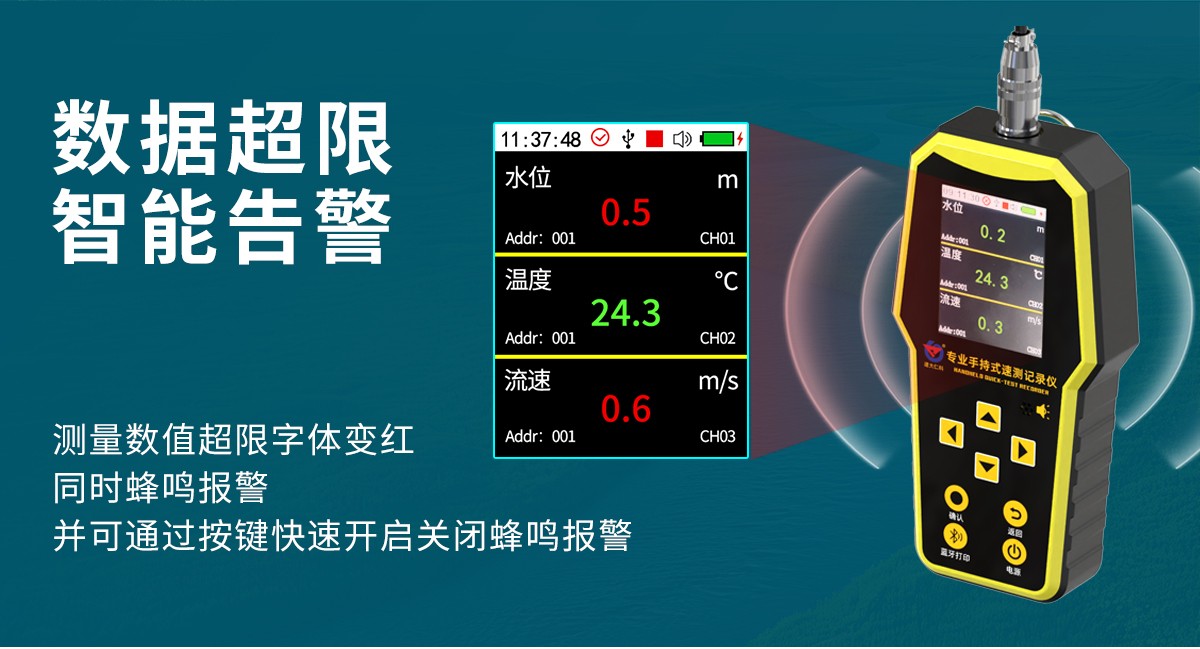 产品特点:整套设备由手持式速测记录仪主机、RS485多普勒流速仪从机、手提箱、探测杆、蓝牙打印机组成。采用485通讯“一问一答”的组网方式,集数据观测、记录、分析为一体。