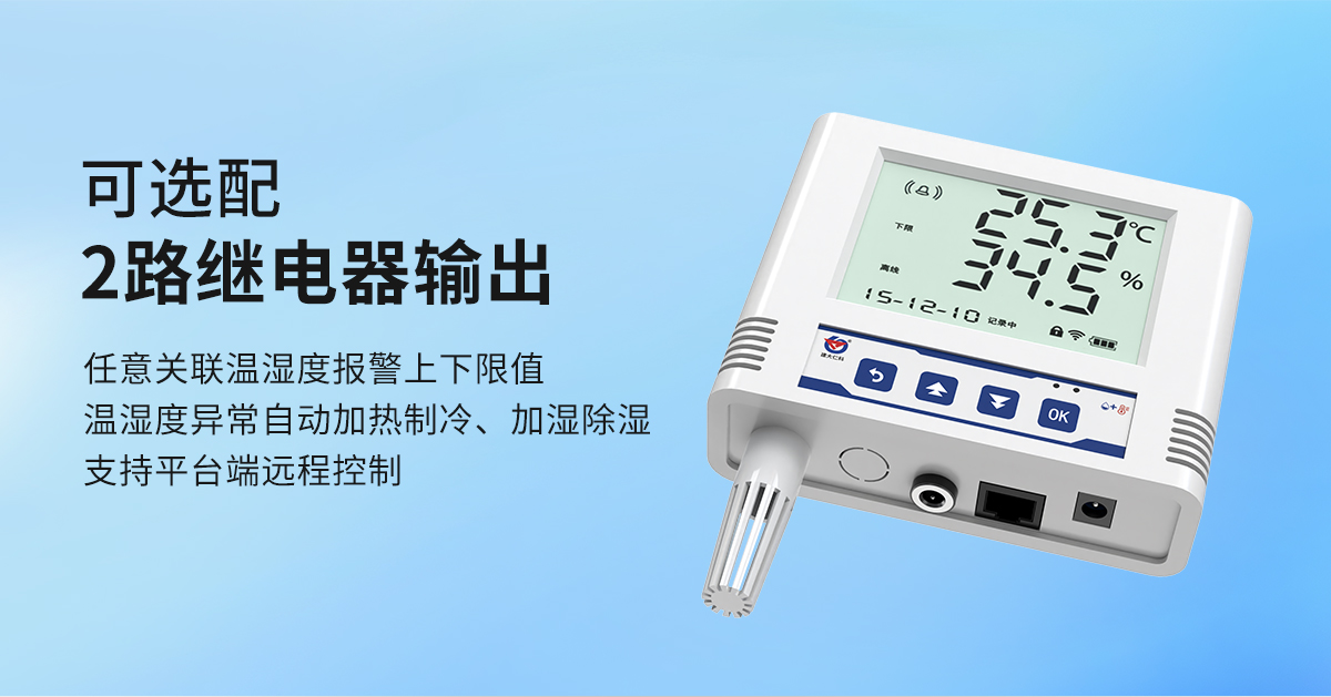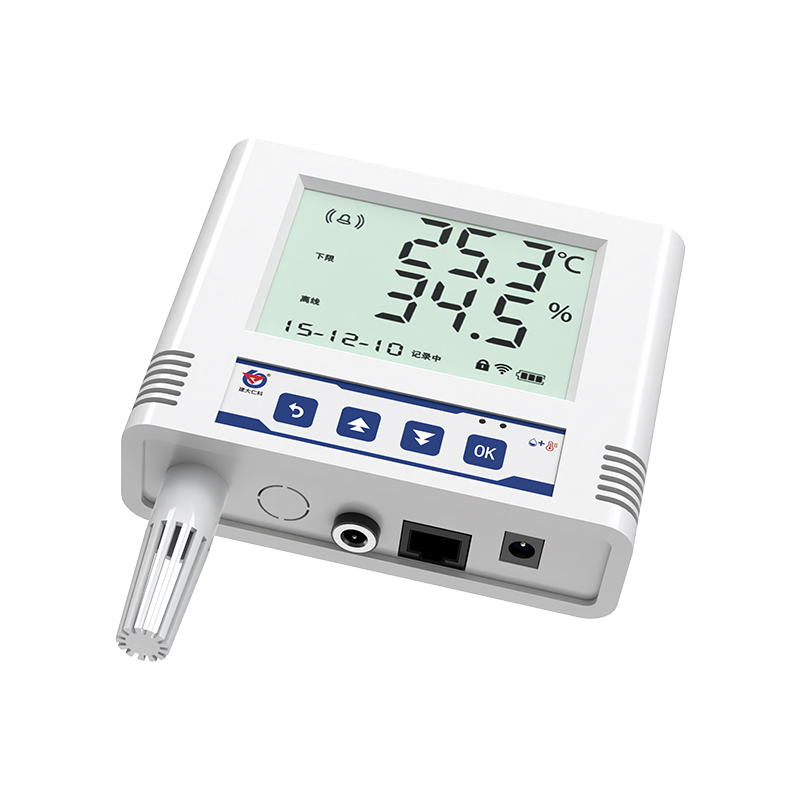 产品特点:产品采用大屏液晶显示,具有温湿度上下限双控,限值自由设置,温度、湿度凭密码校准,4G数据传输等功能,内部集成报警功能模块(蜂鸣器和继电器),可实现超高、低温、高、低湿时报警。产品采用瑞士原装温湿度测量单元,具有测量精度高,抗干扰能力强等特点,保证了产品的优异测量性能。