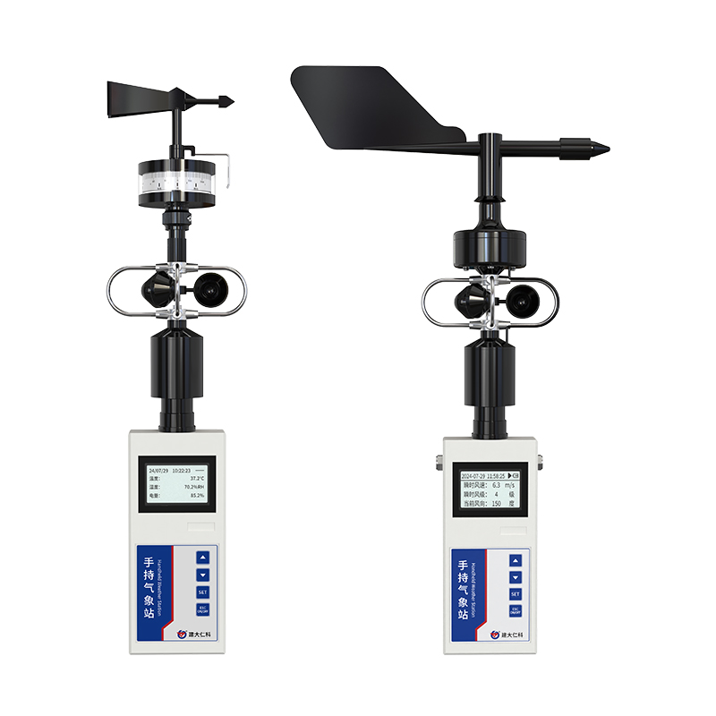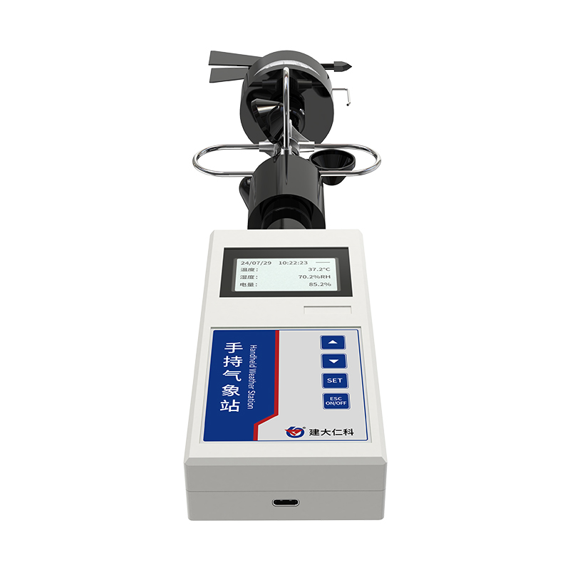 产品特点:机械式手持气象站是一款便携设计的三杯式风速风向仪,具有体积小、质量轻、耗电省、显示直观、坚固耐用的特点,不需维护和现场校准。能同时输出风速、风向、温度、湿度、气压等实时数据。通过机械式结构设计测量实时风速风向值。自带128*64点阵屏,可实时显示检测数据。