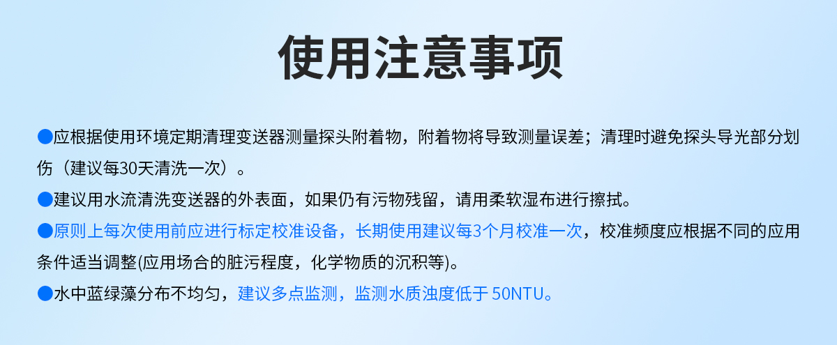 产品特点:该产品是一款测量水体中蓝绿藻浓度的设备;采用荧光原理,相比传统人工计数法,更高效快捷,并可在线实时监测;内部增加滤光算法,抗外界光干扰能力强;自带温度补偿。