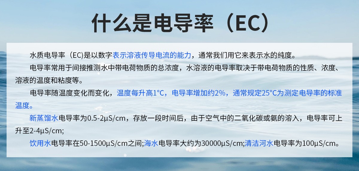 产品特点:水质电导率(EC)是以数字表示溶液传导电流的能力,通常我们用它来表示水的纯度。本产品是一款测量溶液电导率值的设备,具有自动温度补偿功能,可将当前温度电导率补偿到指定温度。采用一体式设计,结构更加轻简,使用更加便捷。
