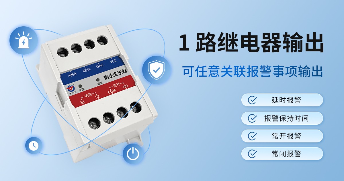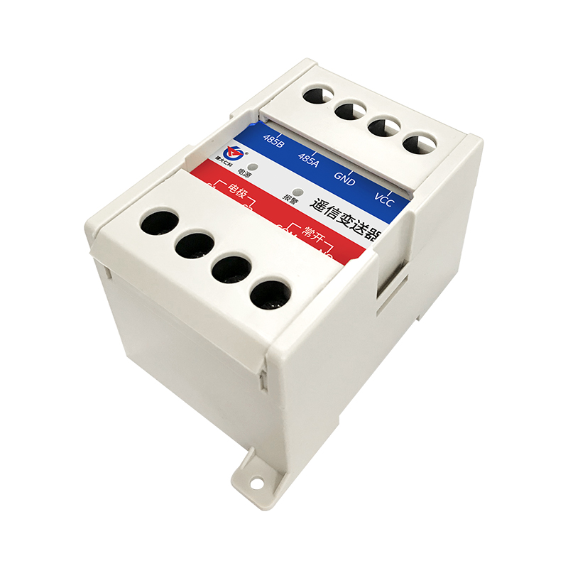 产品特点:该变送器可采集开关量信号,采用标准 ModBus-RTU 通信协议,以 RS485 信号输出,并 带有 1 路继电器常开点输出,可接入现场组态系统或 PLC;设备采用卡轨式外壳,既可壁挂安装也可现场安装于标准 DIN35mm 导轨,安装方便。