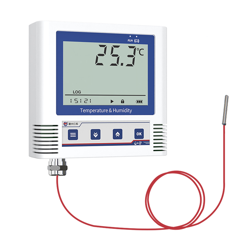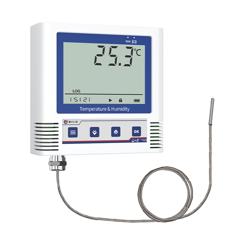 产品特点:该记录仪主要用于监测记录食品、医药品、化学用品等产品在存储和运输过程中的温度数据,内置高灵敏度测温元件,测量精度高、抗干扰能力强,测量范围-200~+300℃,仪自带大尺寸液晶屏,可显示实时温度值、温度极值且温度单位摄氏温度和华氏温度可自由选择。