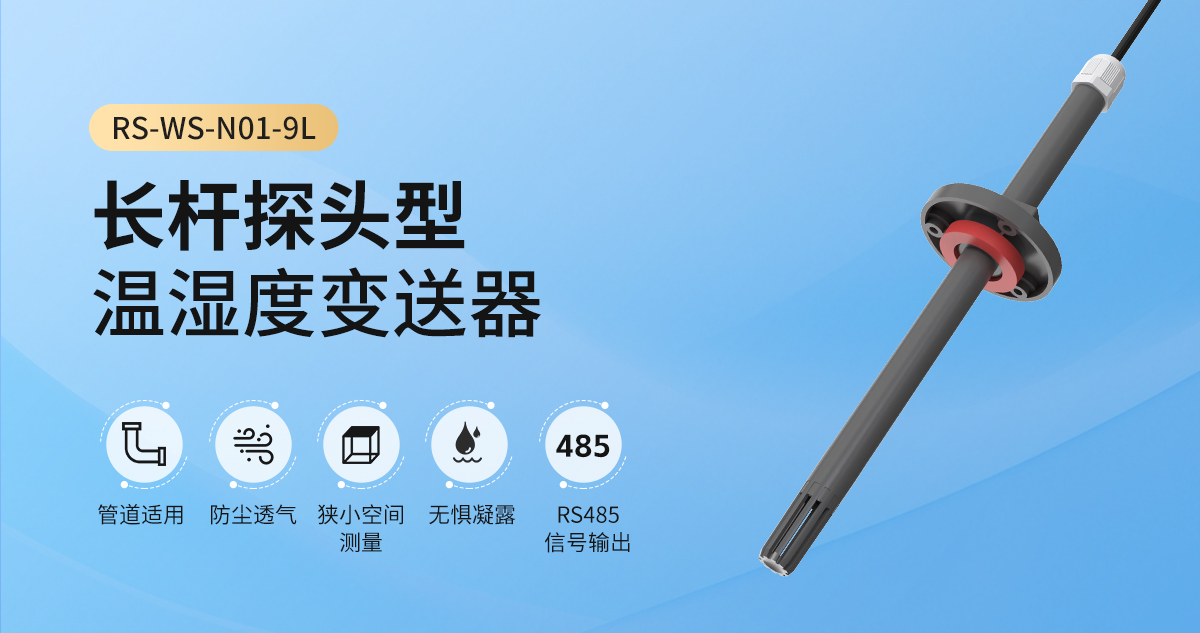 产品特点:长杆探头型温湿度变送器专业应用于管道温湿度测量。透气滤网防尘设计,不锈钢滤芯 25μm高密度孔,既能滤掉灰尘又能保证高湿空气透过,可应用于潮湿、高粉尘场合。内置EMC 抗干扰器件,可经受住各种强电磁干扰。