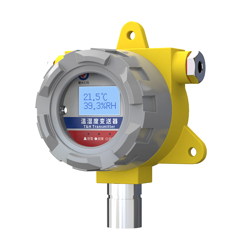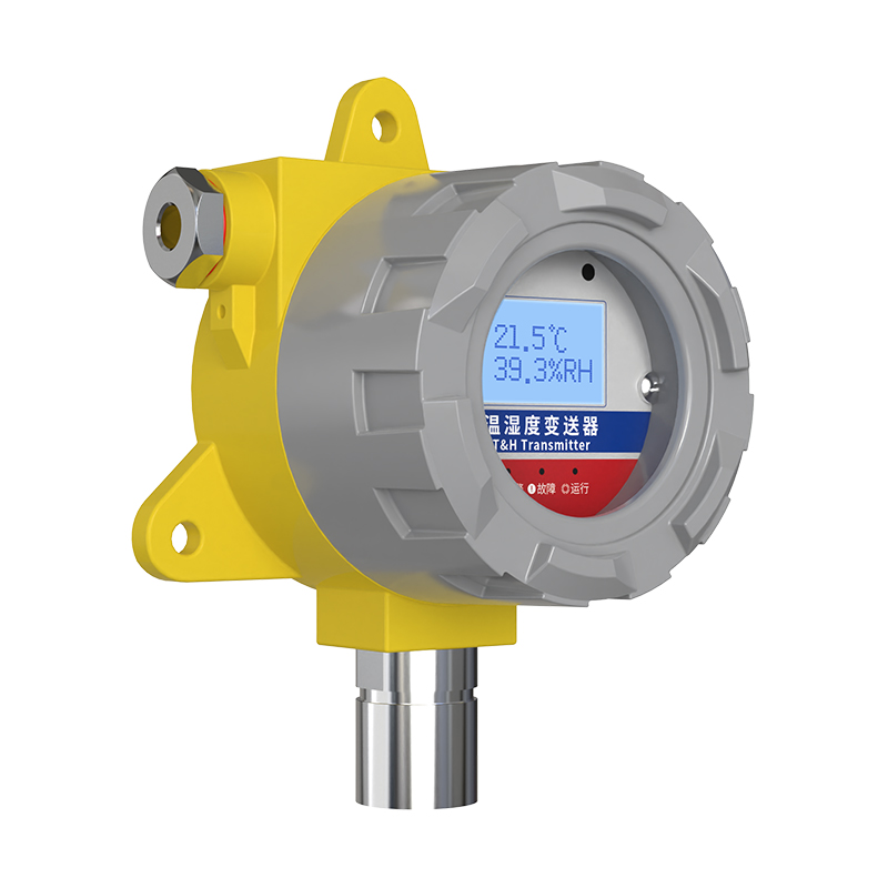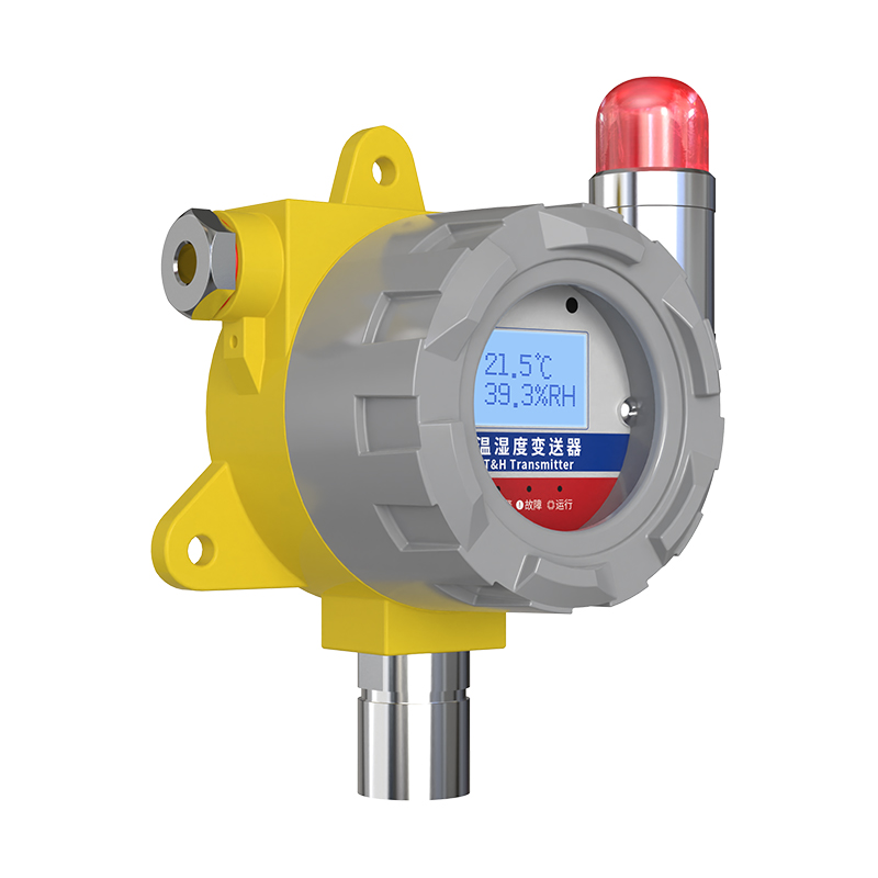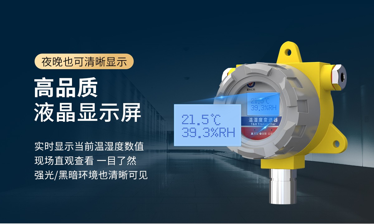 产品特点:我司设计的温湿度变送器,用于空气中温湿度的检测,当浓度超过预置报警值时会发出声光报警信号,以提醒用户及时采取安全措施。带有大屏液晶显示,防护等级 IP65,防爆标志:Ex d IIC T6 Gb,可应用于户外恶劣的现场环境。