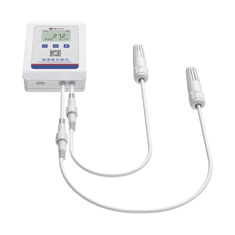 产品特点:WIFI高防护型温湿度变送器具备外壳分离式设计、蓝牙一键打印、高防护、低功耗等典型特征,外壳带磁铁,可直接吸附在冰箱等可磁吸外壳上。连上WiFi就能正常使用,可连接2.4GHz/5GHz频段的WIFI无线网络,支持DNS动态域名解析,提供本地/云端软件平台,实现温湿度集中监控。