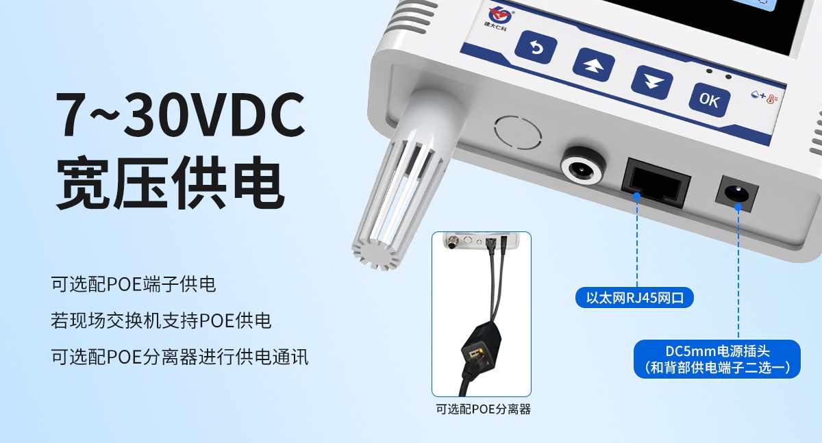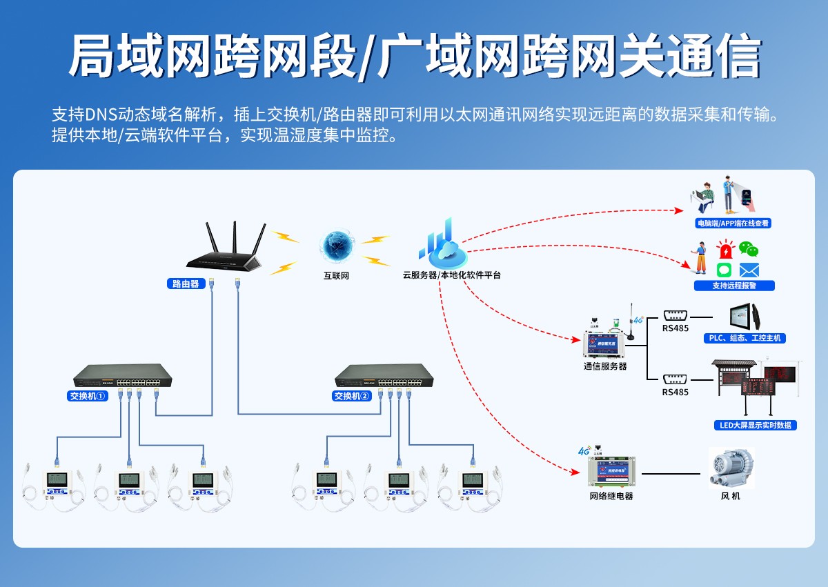 产品特点:以太网多探头型温湿度变送器是一款基于网口传输的工业级温湿度变送器,支持2~4路温湿度监测同步监测,插上交换机/路由器即可利用以太网通讯网络实现远距离的数据采集和传输。提供监测软件平台,实现温湿度集中监控。支持局域网跨网段/广域网跨网关通信,支持DNS动态域名解析。