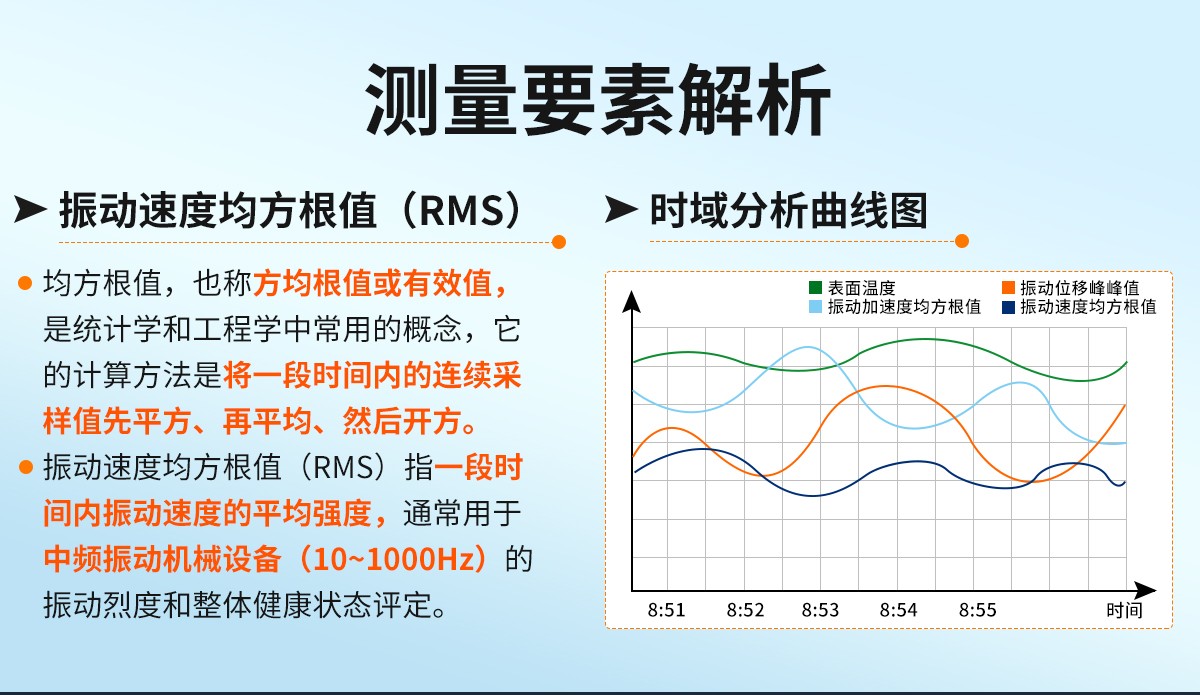 表面温度测量范围(℃) -40~+80 振动速度均方根值测量精度(mm/s) ±1.5% FS(@1kHz,10mm/s) 输出信号 电流输出 4-20mA 电压输出 0-5V/0-10V 负载能力 电流输出 ≤600Ω 电压输出 输出电阻≤250Ω 检测周期 实时 默认线长 1.5m 【产品选型】