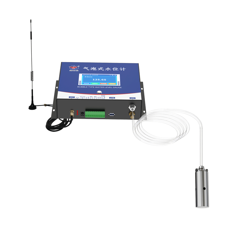 气泡式水位计基于高精度压力传感器以及专业气动控制回路,使水下静水压强转换为气体压强测量,解决传统投入式液位计因直接接触液体而存在的易受液体冲击、易腐蚀结垢、易损坏、易受泥浆堵塞、需定期维护等问题。
