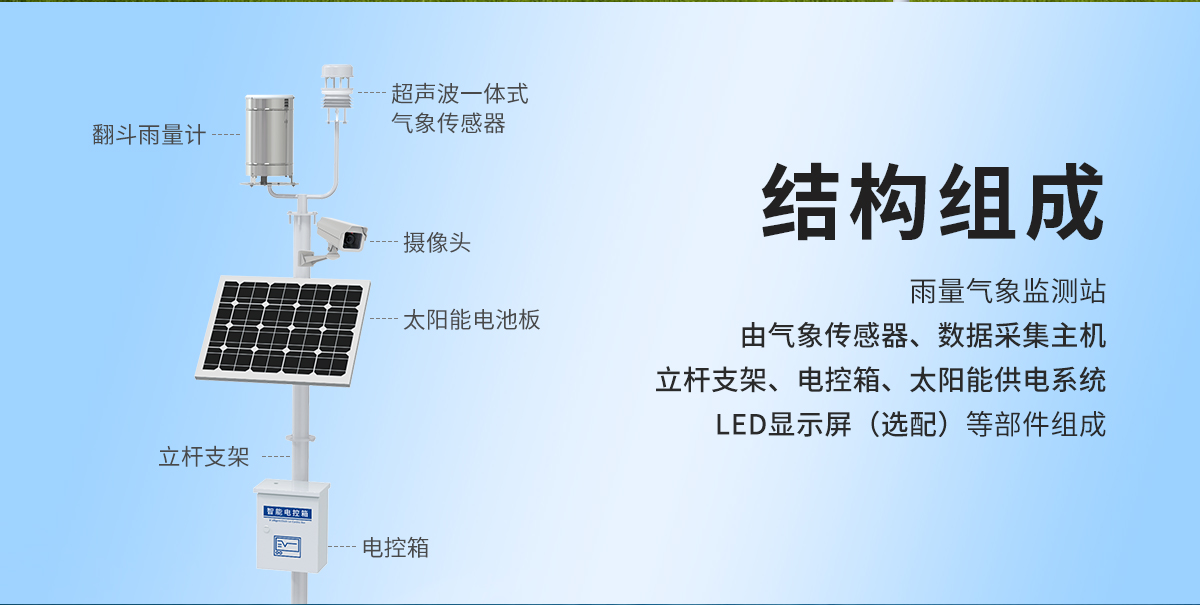 产品特点:雨量气象站可对大气温度、大气湿度、日降雨量、风向、风速、大气压力、太阳辐射等要素进行自动观测,并将结果数据直接存储在采集器中,由数据处理器进行处理后通过室内显示部分显示数据,再将数据发送到中心站的计算机中,由雨量监测专业处理软件做相应的数据处理,并依据对各观测因子的测定方法,最终进行降雨量等级的评定及发布。