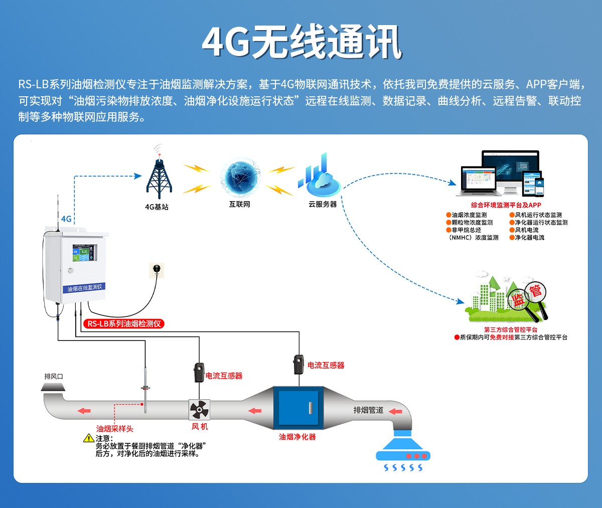 RS- 公司代号 LB- 油烟监测仪 400- 400系列 4G 4G数据上传